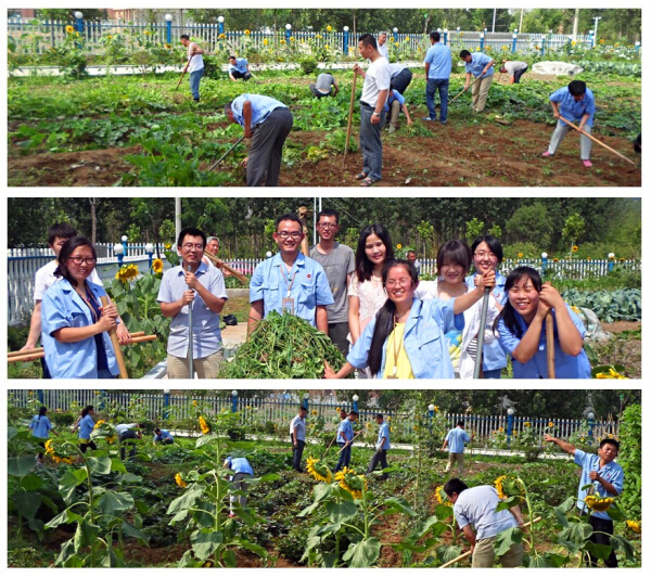 7月2日8:30,集團黨支部組織駐地黨員整理院內(nèi)菜園,在黨支部黨員的帶領(lǐng)下,部分公司員工也積極參與其中。炎炎烈日之下,大家辛勤地鋤草、拔草,分工合作、井然有序,勞動場面十分熱烈,大家雖揮汗如雨卻樂在其中。